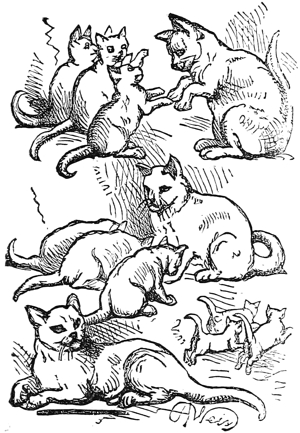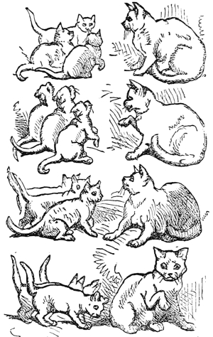 “When Faw, Sol, and Law began to feel the back ends of themselves going up they did not know what to do to keep them down and they mewed and mewed and stuck the claws of their fore paws into the ground. Chickerchecker was much pleased.