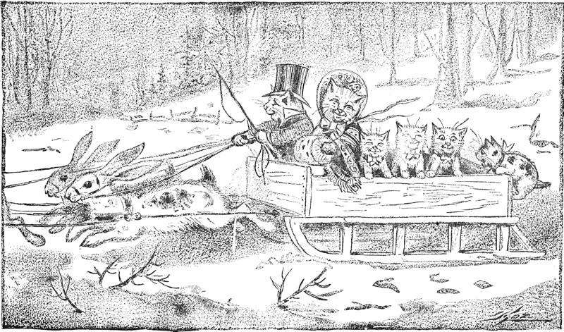 “And now that we are all friends, the cats and the rats and mice are going to meet together and have a Janjibo, and there is to be fine music and the tables are to be spread with everything nice. The dogs said that as the rats and mice were the ones to ask to be friends they must be the ones to bring things to eat, and they are working with all their might to get ready the pies, and cakes, and jellies, and ice-creams, and nuts, and sweet corn, and cheeses, and eggs, and dishes, and knives, and forks, and spoons. We shall soon see them, for we are near the place where the Janjibo is to be.