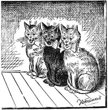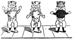 “Three kittens, Faw, Sol, and Law, were once playing in a yard when a short boy named Chickerchecker came and tied air-balls to their tails so that he might have the fun of seeing the air-balls take Faw, Sol, and Law up in the air.