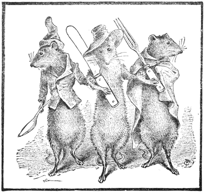 “Next came a great many rats with a pie so big they could hardly lift it. They were afraid they should drop it, and they held it up with all their might by their heads and their backs, and their shoulders. The Pie-cutter with his knife came close behind. The young rat went to help.