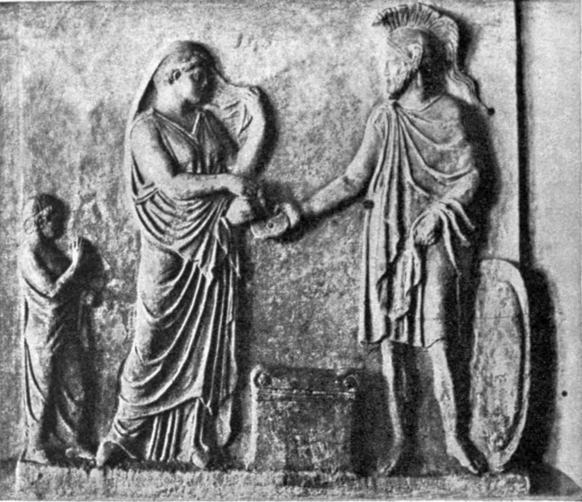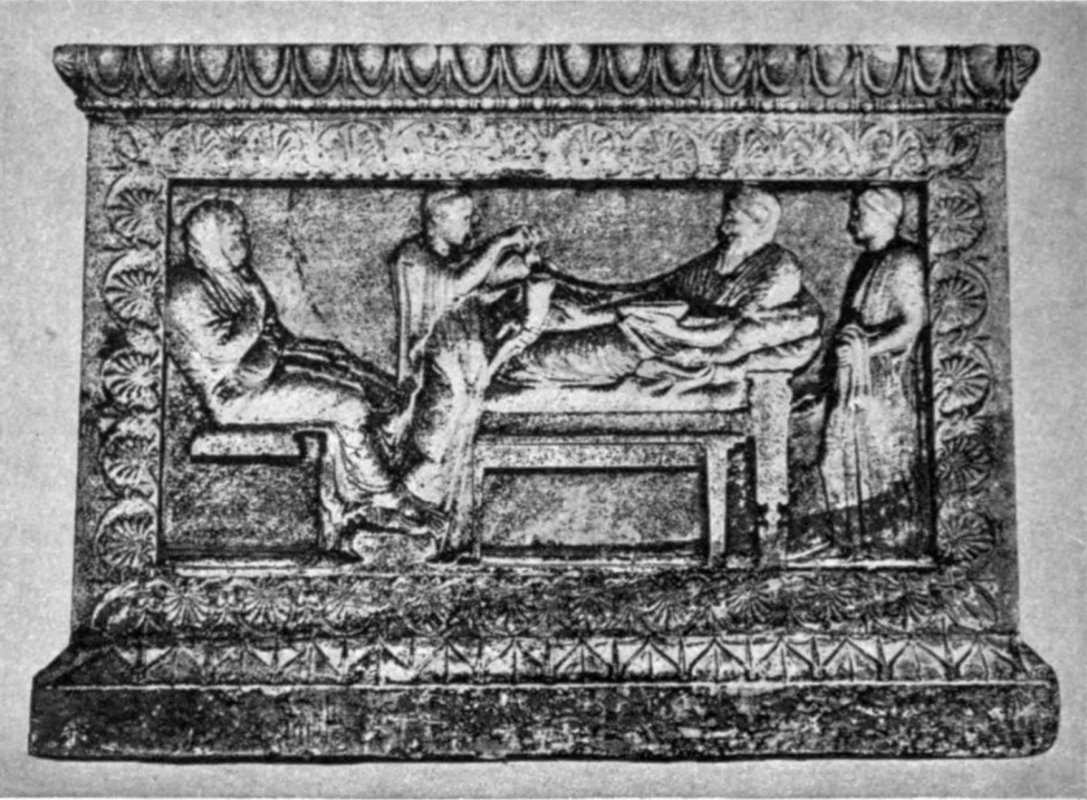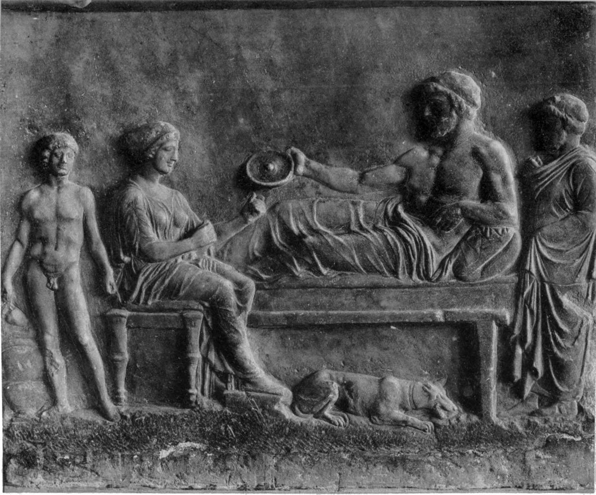 | Distinction of tombs from commemorative tablets, 87. Lines of descent from Spartan reliefs, 88. Athenian banqueting reliefs, 88. Customs of sitting and reclining, 89. Tegean relief, 90. Presence of votaries, 91. Asklepian tablets, 92. Tablets to heroes and to ancestors, 93. The hero as horseman, 94; accompanied by lady, 98. Votive tablets from Tarentum, 100. The hero as foot-soldier, 102; unarmed, 103. |
