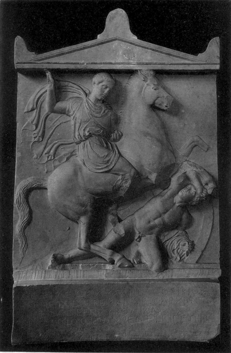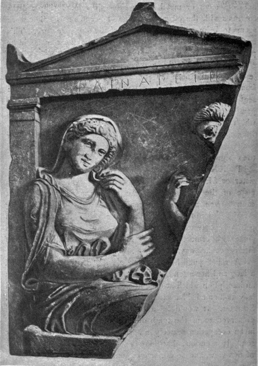 | Portraits of the dead originate in Ionia, 133. Portraits at Athens, 134; their ideal character, 134. Portrait statues, 135; on horseback or on foot, 136; female figures, 137. The dead as Hermes, 138. Statues of mourning women, 139. Portraits on stelae, first period, 140; Aristion, Lyseas, 141; stelae of youths, 143. Second period, stelae of citizens, 145; stelae of warriors, 146; Dexileos, 147; young athletes, 149; hunters, 152; students, 153; shipwrecked men, 154; children, 154; matrons, 157; girls, 158; priestesses, 160. |