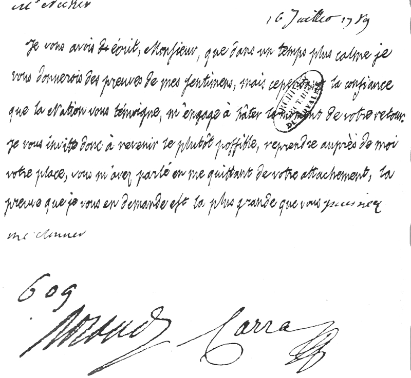 | Autograph Note of Louis XVI. recalling Necker, on the 16th of July, after the Fall of the Bastille | 213 |