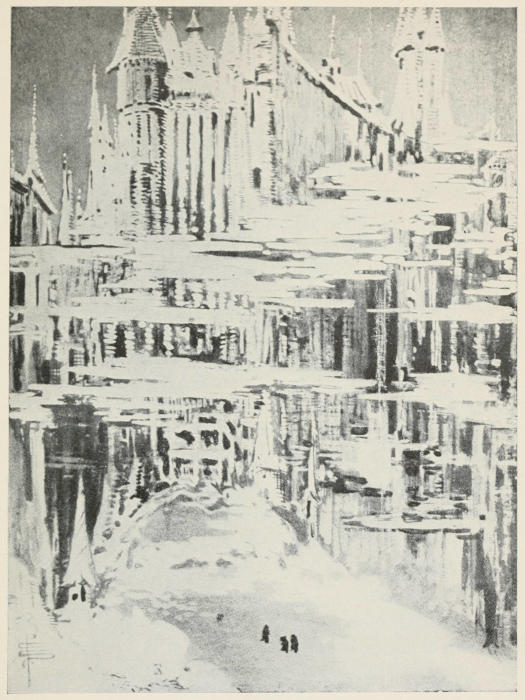So he turned and dashed back through the cool night. There was the city again, glimmering beneath the pale sky. Beside it was a river, too, but not the one they had rushed through before. For this one was crossed by shining bridges from shore to shore. Luigi had once seen those bridges from below, and they had seemed to him to tower through the clouds. But now they came hardly to the giant’s waist.