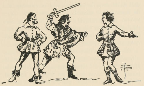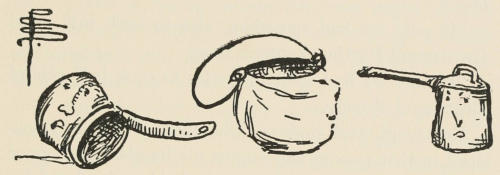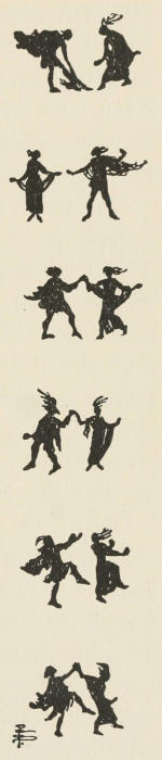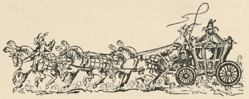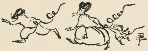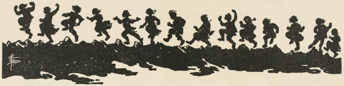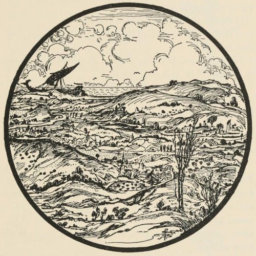 The young giant went on, whistling a little ruefully. Another man passed him, and another,—two or three driving in a tiny cart behind a little animal. Presently they came so thick and fast that Benevaldo had to keep skipping aside to avoid stepping on them. The whole[309] country was dotted with their absurd houses; and he saw now that the green and brown squares must be their fields, and the tiny paths their highways.