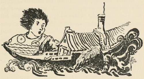 The bright ferry boats crawling across the stream rocked in his wake. Even the dark ocean liners, tied up at their docks, trembled. “It must be blowing up a cyclone,” said the pilot on a tug, beating up and down on the waves. But when he looked out, the stars were shining clearer than ever, and there was not a cloud in the sky.