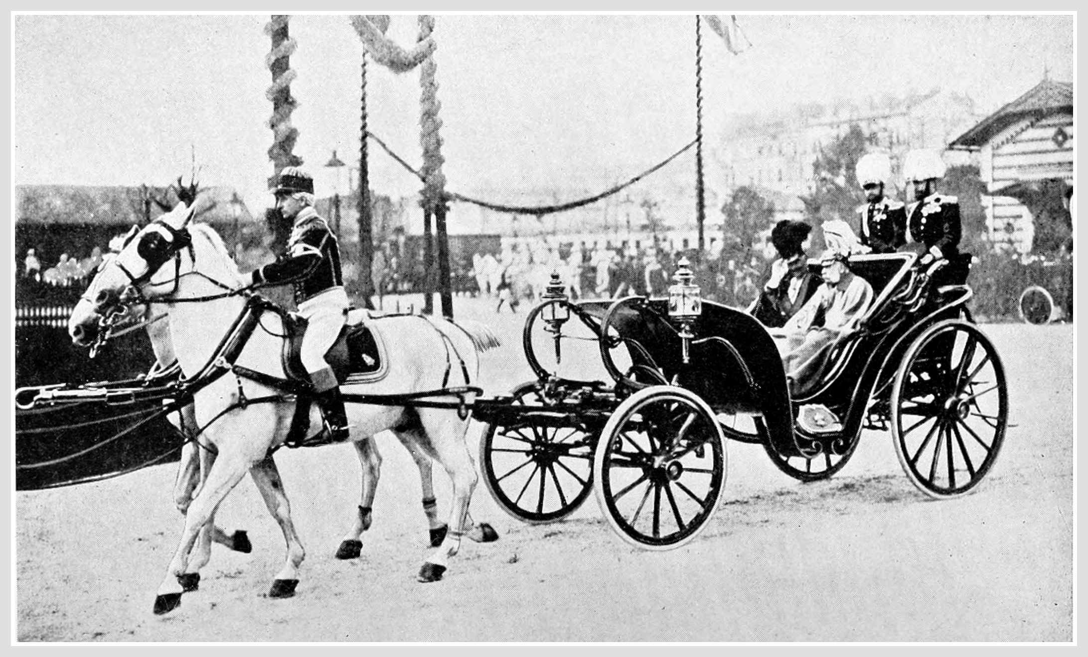 | The German Emperor and the Emperor of Austria driving in Vienna in 1908 | Frontis- piece |