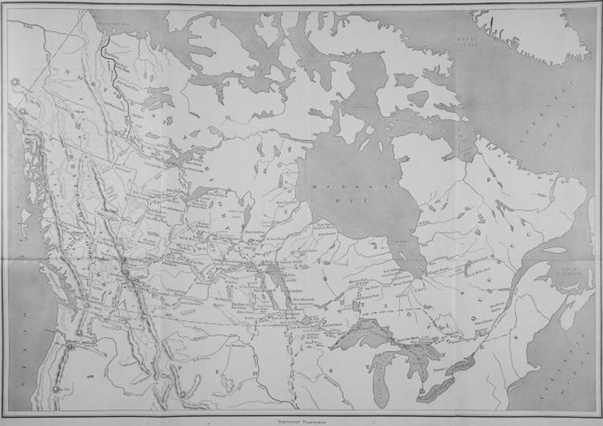 Notes to Chapter XXXIII.—The contents of this chapter are drawn from the same sources as XXXII; in addition Hansard and Congressional Reports for both the Vancouver Island and Oregon disputes, the Parl. Enquiry Report of 1857; H. B. C. Memorial Book on Puget Sound Company; Fitzgerald’s Vancouver Island, 1849; Martin’s H. B. Territories, 1849; De Smet’s Oregon Missions, 1847; Oregon (Quarterly) Hist. Soc. Report, 1900; Schafer’s Pacific Northwest, 1905; and most important—H. H. Bancroft’s invaluable transcripts of Douglas and Finlayson MS. in his “British Columbia.” For a popular account of McLoughlin from an absolutely American point of view nothing better exists than Mrs. Dye’s “Old Oregon,” though it may be sniffed at by the higher critics for unquestioning acceptance of what they please to call the “Whitman myth.” Whitman’s ride was not all myth, though the influence was [386]greatly exaggerated; and the truth probably exists half way between the critics’ skepticism and the old legend. Wilkes’ Narrative of the Exploring Squadron, 1845; the reports of Warre and Vavasseur, the two special spies on McLoughlin; early numbers of the old B. C. Colonist and Cariboo Sentinel; Sir Geo. Simpson’s Journey Round the World; Lord’s Naturalist, 1866; Macfie’s Vancouver Island, 1865; Mayne’s B. C., 1862; Milton’s North-West Passage, 1869; Paul Kane’s Wanderings, 1859; Dunn’s Oregon Territory, 1844; Grant’s Ocean to Ocean, 1873; Gray’s Oregon, 1870; Greenhow’s Oregon, 1844; Dawson’s Geol. Reports, Ottawa; Peter Burnett’s Letters to Herald N. Y.—also throw side lights on the episodes related.