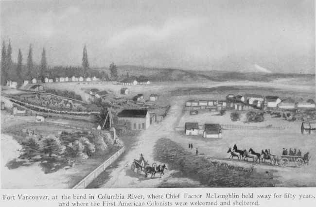 Fort Vancouver, at the bend in Columbia River, where Chief Factor McLoughlin held sway for fifty years, and where the First American Colonists were welcomed and sheltered.