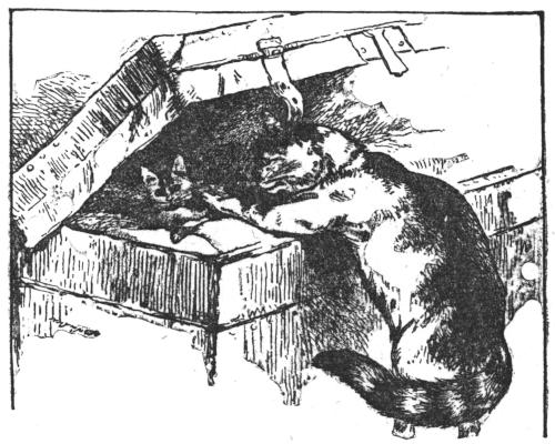 “Last summer she had a very smart handsome kitten, a great pet with us all, and we think Big Betsey understood us when we said we did not think the kitten could be taken too. The morning we were to start, when Mama went upstairs, there in one of the trunks lay Big Betsey’s kitten, and there Big Betsey stood packing her as nicely as possible, standing up on her back feet and tucking her in with her paws! Did you ever hear of such a thing, Jimmy?”