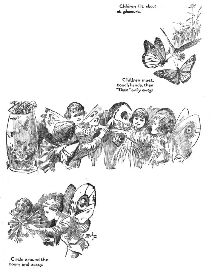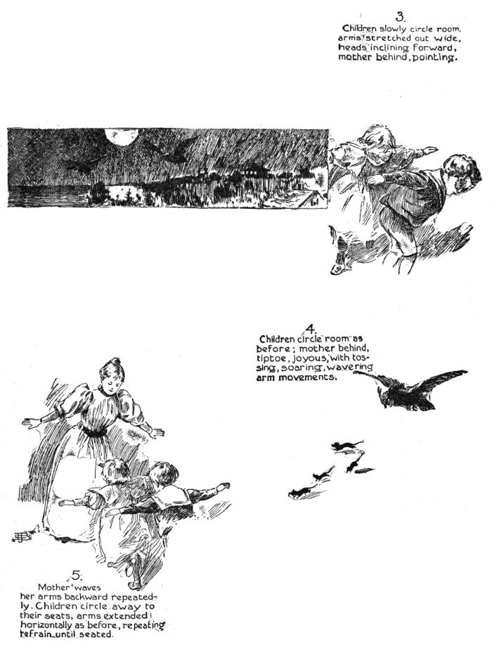 4. Children circle room as before; mother behind, tiptoe, joyous, with tossing, soaring, wavering arm movements.