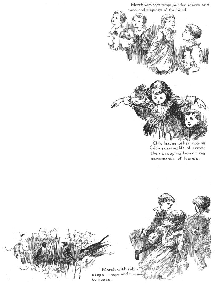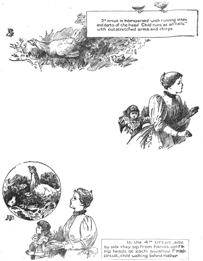 3d. circuit is interspersed with running steps and darts of the head. Child runs at all “calls” with outstretched arms and chirps.