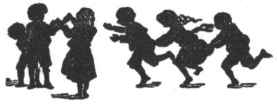 3. Children hippity-hop around in pairs, joyously.