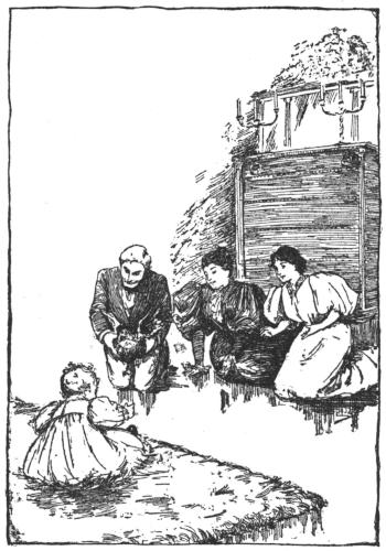 Papa Pinkham had caught a gray mouse in the wire cage-trap. It was so cunning Posy begged to keep it, and Papa Pinkham left it in the cage-trap and went off to business. Posy fed the mouse with five kernels of corn, and then went to dress her doll Lilybell for breakfast.