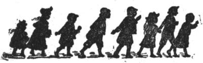 Children crowd close behind the teacher: all advance in a body with rapid step.