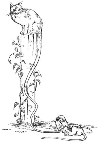 “No,” whispered Floss, “it’s such a cunning mouse, so soft and smooth, such bright little eyes, such a long slim tail—no, don’t.”