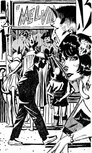 That's the way things stood when I just happened to stop in front of the window of Melvin Rosy's House of Fantastic Jewelry in Greenwich Village. I'd passed by the shop many times but I'd never paused to look in. Of recent years, the Village has filled up with all sorts of peculiar people, Martians, Venusians and the little green men from outer space. One thing I'll have to hand to Maudie, she was right about calling some of these people uncouth. Some of the Galaxians really are riff-raff.