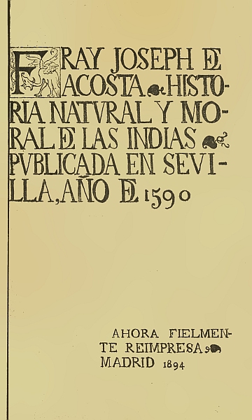Según la portada de la edición de 1894, la obra transcripta es una fiel reimpresión de la primera edición publicada en lengua castellana, en el año 1590, de la "Historia natural y moral de las Indias".