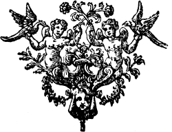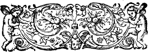 This was in the infancy of the art; but as it gradually emerged from its swaddling clothes, printers discovered various ways of increasing the beauty of the printed book. First they adopted a title-page, quite a modest thing at first, which for its brevity has been called a ‘Label’ title. Next they conceived that the appearance of the title-page would be improved if it had a border like the first pages of the old manuscripts. Then it occurred to them that it would look better if the printed matter were begun lower down on the page, leaving a blank space above. In course of time these blank spaces, and those which generally followed at the end of dedicatory epistles and such like, were ornamented, whatever was used for that purpose being called by the names of head or tail piece. Occasionally the printers even went so far as to fill up the spaces at the ends of paragraphs with[6] small ornaments, a wholly unnecessary labour which was soon dropped.