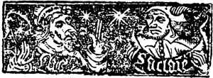 They sometimes put a border partially round this first page, and they tried as far as possible to imitate the richly illuminated initial letters—but with poor results at first. They left the spaces between the divisions of the work blank, but they generally put on the last leaf below the colophon or on a leaf by itself a woodcut embodying their name or initials or the sign of the house in which they carried on their trade. They also adopted the paragraph mark and the Maltese cross, which for many years remained the only small ornaments they possessed, unless indeed we can claim for the asterisk, or, as Luckombe called it, the ‘asterism,’ an equal antiquity with the other two, which is quite possible.