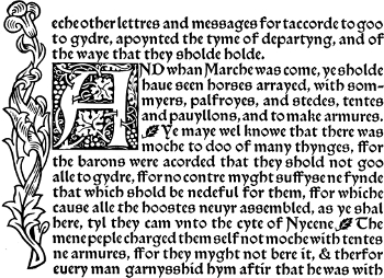 All this the first printers followed as closely as they could. Their books had no title-pages; they put the title above the first page of text, which they began as high up on the paper as they could.
