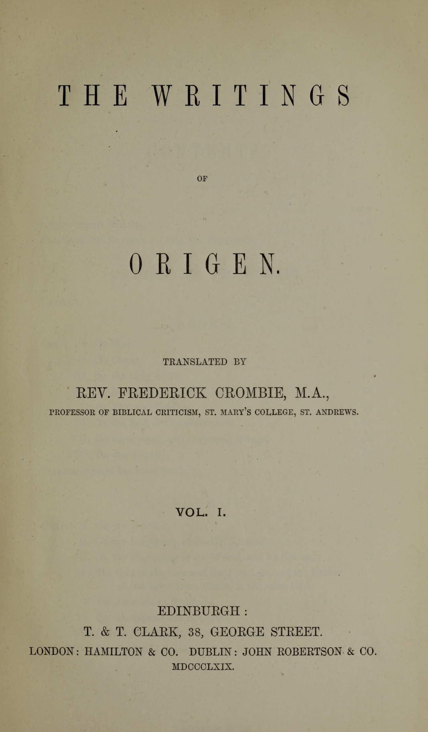 Title: The writings of Origen, Vol. I (of 2)