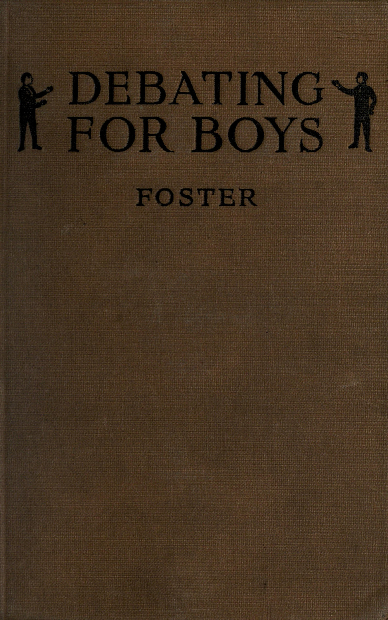 Such is the scene that many prefaces suggest. This preface, however, is different—and quite shameless. It says, merely, that the title “Debating for Boys” carries its own statement of its reason for being. Boys like to debate; debating will do them good. This volume is a simple, unpretentious manual designed to help boys to debate efficiently—to get from the most manly of all sports, and a royal sport it is, all of the pleasure and profit it has to offer. The book is designed, first of all, as an aid to the boy himself—in home, club, school, church—and, also, as an aid to the father, club director, teacher, clergyman, all, in fact, who are his friends and advisers.