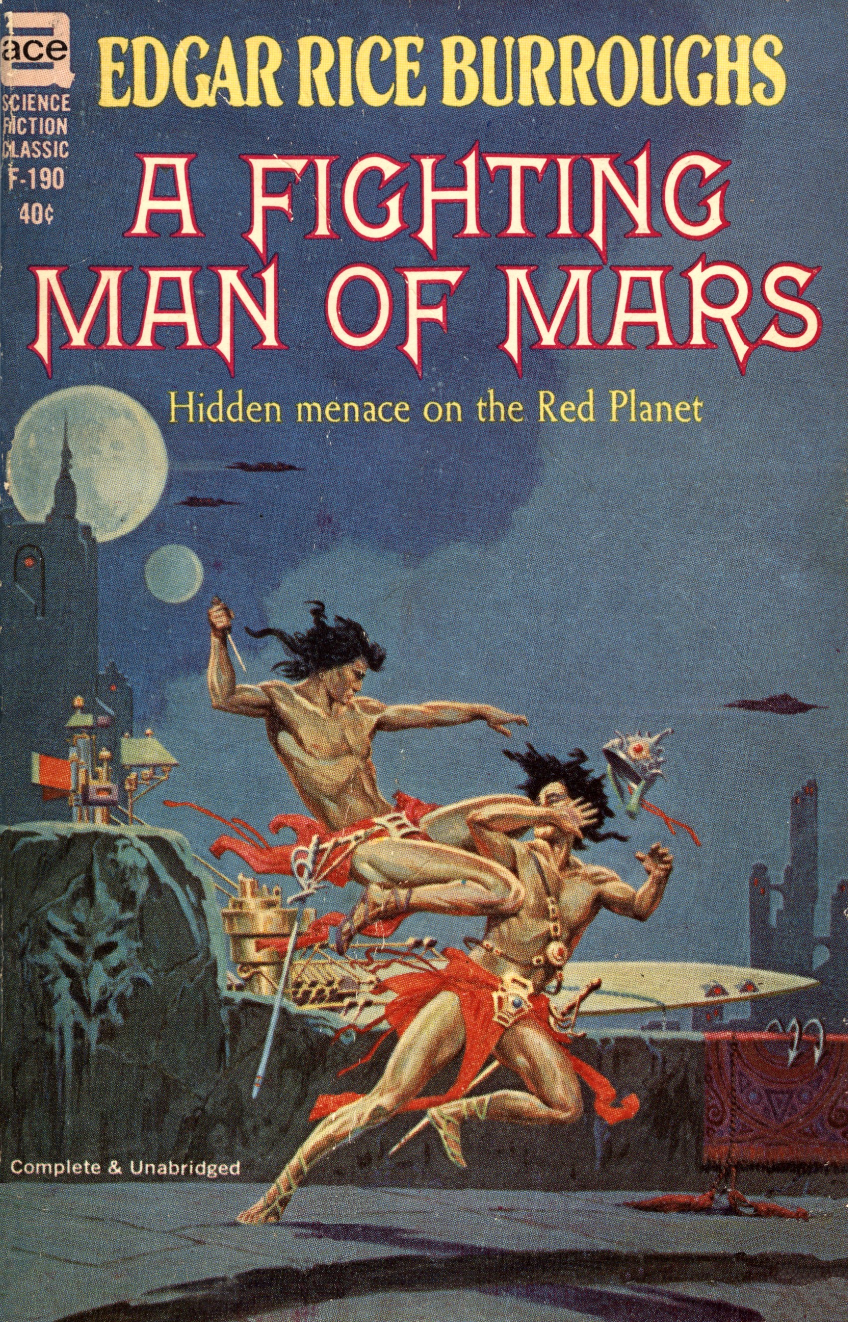 Hadron of Hastor, one of Carter's finest warriors, takes to the field to avenge Helium and locate the hidden foe. His adventures among the little known ancient cities of Mars, his comradeship with the brave warrior-woman Tavia, and their struggle together against the hordes of a cunning monarch, make A FIGHTING MAN OF MARS a breathtaking science-fiction classic.