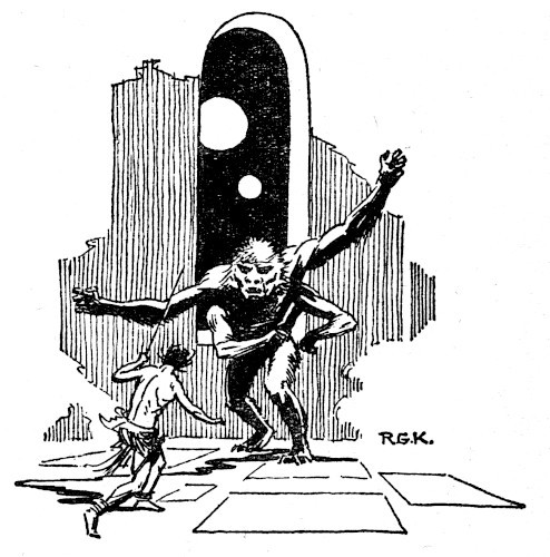 One by one the blocks were loosened and removed and it was with a feeling of exultation that I slipped through into the corridor. Above me rose a spiral ramp. Where it led, I did not know, but at least it led out of the pits. Cautiously, and yet without any hesitation, I ascended. I must try to reach the laboratory before Phor Tak had slain Tul Axtar. This time I would make sure of the old inventor before I entered the room and I prayed to all my ancestors that I should be in time.