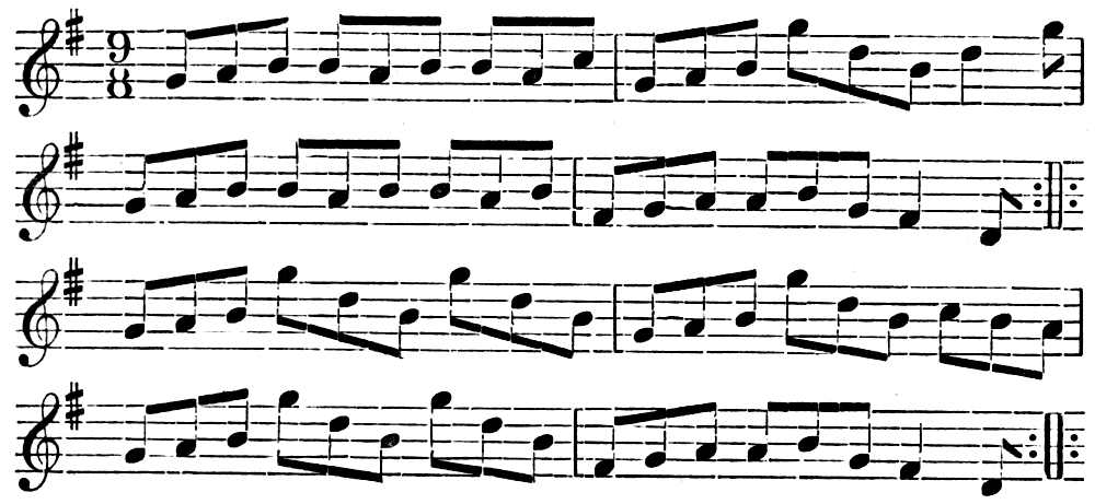 The tune the fifers played to call the sailors to the grog tub was “Nancy Dawson,” a tune well known to everyone as “Sally in our Alley.” The “double double double beat,” which drummed the men to quarters, is also well known, as “Hearts of Oak”—a song still popular in many parts of England. After these, the best-known song was that known as “Spanish Ladies,” a beautiful old song, long popular at sea, and still familiar to many people. It has been quoted so often, by so many popular writers, that we must apologise for reprinting it. It is still sung at sea, especially aboard American merchant-vessels. The Americans sing it with various alterations.