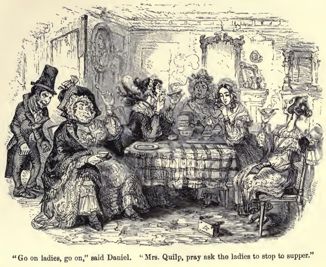 We had scarcely begun our repast when there was a knock at the door by which I had entered, and Nell bursting into a hearty laugh, which I was rejoiced to hear, for it was childlike and full of hilarity, said it was no doubt dear old Kit coming back at last.