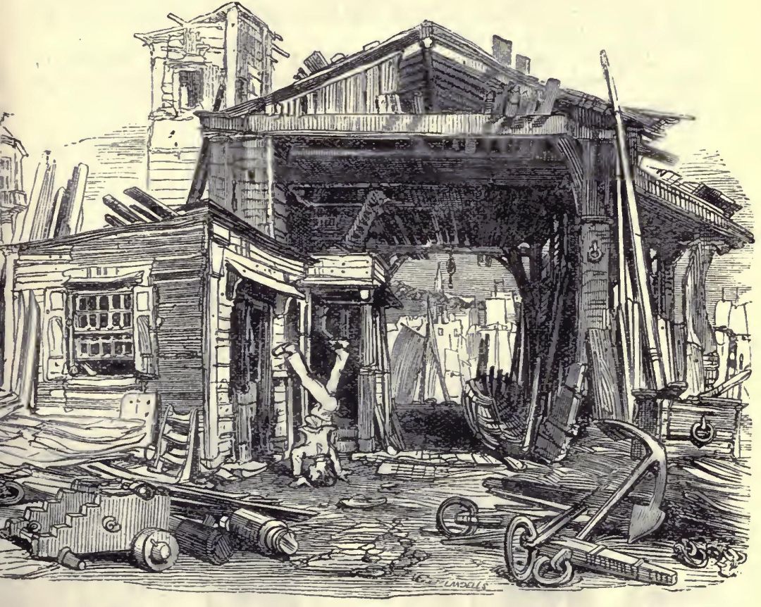 Then, the crowds for ever passing and repassing on the bridges (on those which are free of toll at last), where many stop on fine evenings looking listlessly down upon the water with some vague idea that by and by it runs between green banks which grow wider and wider until at last it joins the broad vast sea—where some halt to rest from heavy loads and think as they look over the parapet that to smoke and lounge away one's life, and lie sleeping in the sun upon a hot tarpaulin, in a dull, slow, sluggish barge, must be happiness unalloyed—and where some, and a very different class, pause with heavier loads than they, remembering to have heard or read in old time that drowning was not a hard death, but of all means of suicide the easiest and best.