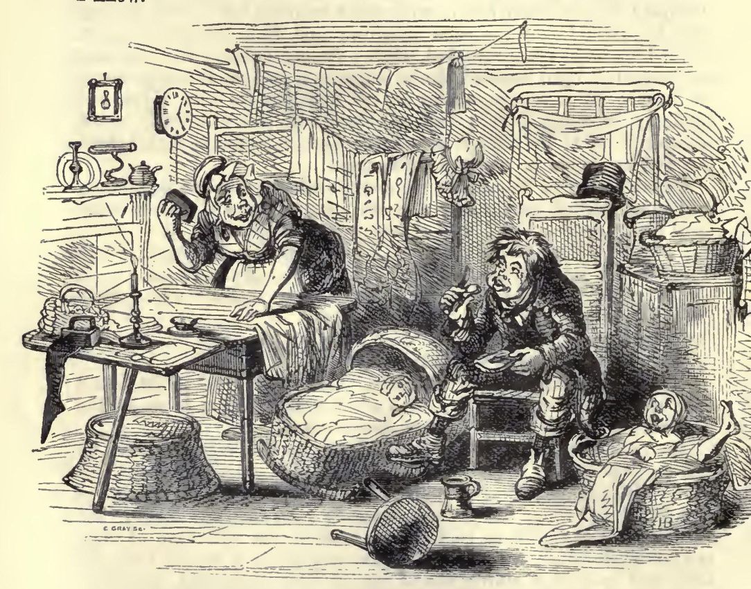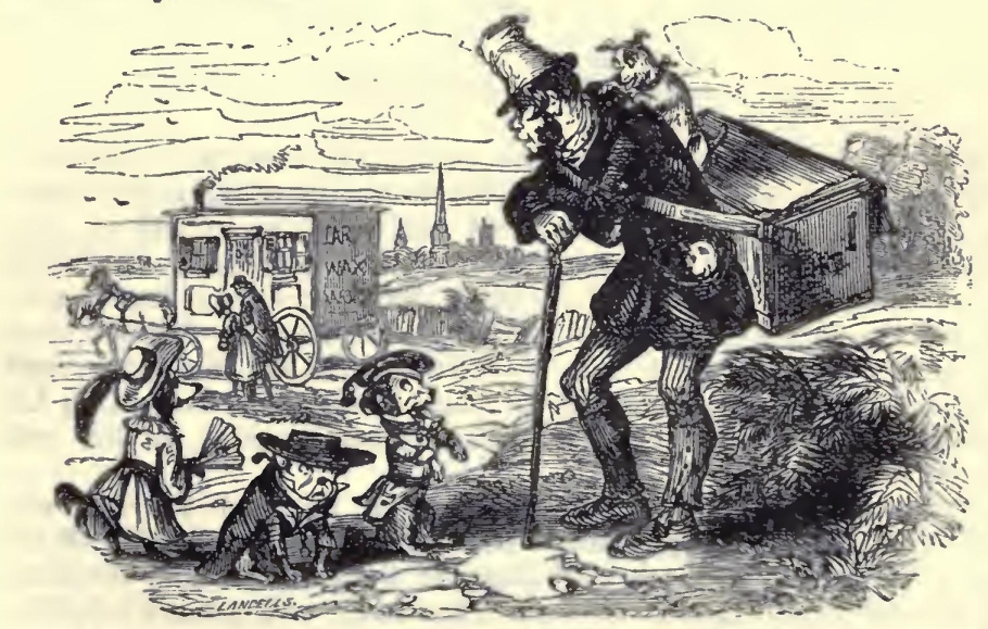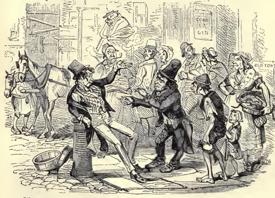 Covent Garden Market at sunrise too, in the spring or summer, when the fragrance of sweet flowers is in the air, over-powering even the unwholesome streams of last night's debauchery, and driving the dusky thrush, whose cage has hung outside a garret window all night long, half mad with joy! Poor bird! the only neighbouring thing at all akin to the other little captives, some of whom, shrinking from the hot hands of drunken purchasers, lie drooping on the path already, while others, soddened by close contact, await the time when they shall be watered and freshened up to please more sober company, and make old clerks who pass them on their road to business, wonder what has filled their breasts with visions of the country.