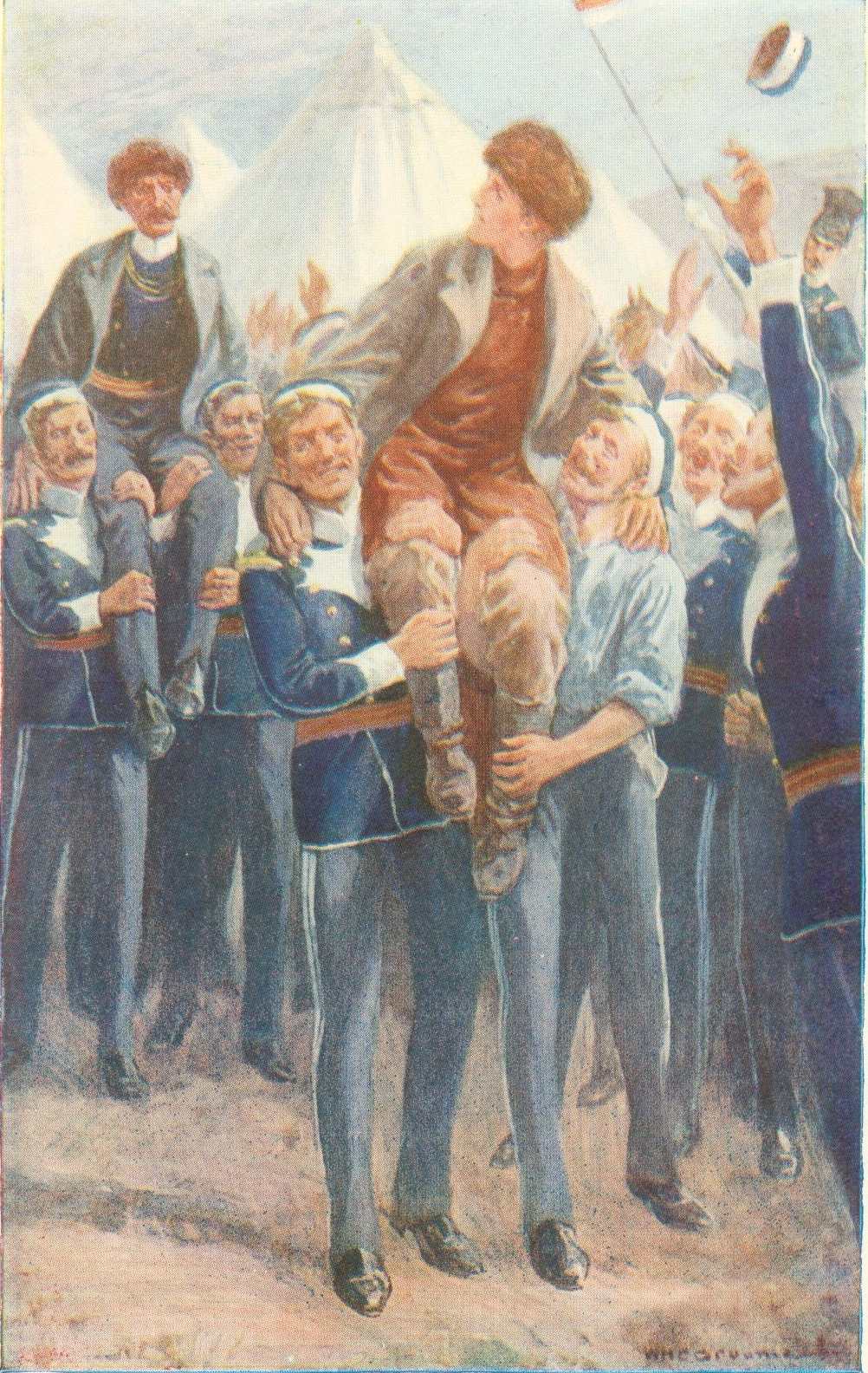 One day, when Jack was reading in his quarters, he heard a tremendous cheering from some men of the regiment. He went out, book in hand, to see what was the matter.