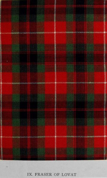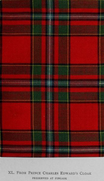 Various circumstances tend to enhance the interest of this design, which is especially associated by Jacobite enthusiasts with the memory of Prince Charles Edward, and which was named during the campaign of 1745-46 from his personal use of it. Authenticated by specimens of contemporary and immediately subsequent dates—invariably bearing the legend of royal adoption—the tartan may be ranked amongst the earliest clan patterns extant in fabric. It is undoubtedly an old pattern of the Mac Raes; and it was certainly worn by the Prince in their territory. But whether it was previously used by members of the clan, or whether it was adopted by them as a compliment to the wearer, cannot be determined. Tradition indicates, however, that the Prince was wont to don the local colours of the various clans in his sojournments in their respective districts. It is now generally known as Mac Rae; but in all representations hitherto published the omission of the yellow lines has produced confusion as to the true sett.