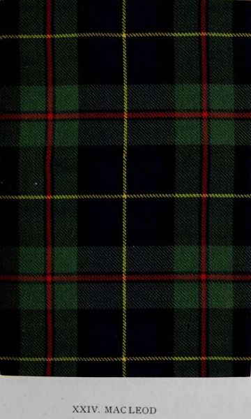 Diversity of opinion prevails concerning the tartan of the Mac Leods; and, unfortunately, nothing was done to settle the dispute when the Clan Mac Leod Society recently discussed the claims of rival patterns. The inspection of important collections from 1785, the date of the repeal of the statute against tartans, till the present day, proves that the design here given invariably occurs under the family designation. Certain Mac Leods claim and wear the Mackenzie tartan as their own, though the appearance of both, under their respective names, in old collections proves this to be an impropriety. The mistake doubtless arose from the fact that when the 73rd Regiment was raised in 1777 it was commanded by a son of the Earl of Cromarty, whose courtesy title was Lord Mac Leod, though his family name was Mackenzie, and whose tartan was the dress of the corps. Of comparatively recent date, the assumption has yet taken considerable hold, in consequence of its adoption in several works relating to clan patterns. The Mac Leods of Raasay wore a design in brilliant yellow whose authority is the Vestiarium Scoticum. An examination of the portraits and relics at Dunvegan Castle in Skye, the seat of Mac Leod of Mac Leod, has been made in search of records of the tartan of the clan. It has revealed the singular circumstance that in the only early portrait in tartan dress, that of the chief painted by Allan Ramsay in 1768, red is the predominant colour of the tartan plaid, while coat and trews are in “Rob Roy” check. Logan has stated, from recollection, that the plaid is in the Fraser pattern; but here he is in error. It is to be hoped further investigation will elucidate the history of the tartan in the painting referred to.