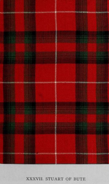 Of the early use of the various setts of the Stewarts little can be gleaned, unfortunately, even from painstaking investigation at the most likely sources. The pattern now submitted of the Stuart of Bute is a reproduction of another of the drawings omitted from the published Vestiarium Scoticum. It is clear from the correspondence between Sir Walter Scott and Sir Thomas Dick Lauder, already mentioned, that Charles Edward Stuart executed all the water-colours about 1829 (although the work edited by his brother was not published till thirteen years later) for the transcript of the MS. whereon the book is founded. The records of this, as of the previous design, point to its use having been confined almost entirely to the family from whom it derives its title, though others, more or less closely related, have likewise claimed an interest in the wear. Whether or not the pattern was employed by the Stuarts of Bute prior to the production of the MS. by the father of the Stuart brothers has not been ascertained.