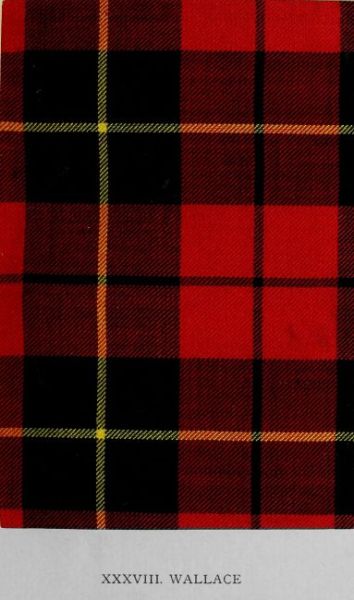 For this design there are records extending over a hundred years; and it is credibly asserted that the tartan is of much greater antiquity. Be this as it may, the pattern is placed under its proper name in many collections formed early in the century. Somewhat inexplicable is the fact that the tartan usually styled Mac Lean of Duart was greatly worn by certain Wallaces down to about twenty years ago. It is, indeed, frequently designated in old books of tartan relics as Mac Lean and Wallace. Yet no record of either family furnishes any explanation of this singular conjunction. The accumulation of evidence as to early use by the Wallaces of the example here illustrated has now led to its adoption by all bearing that name. It is a family tartan, for the Wallaces were in no sense a clan; but its antiquity, and its authenticity, entitle it to a place in this work.