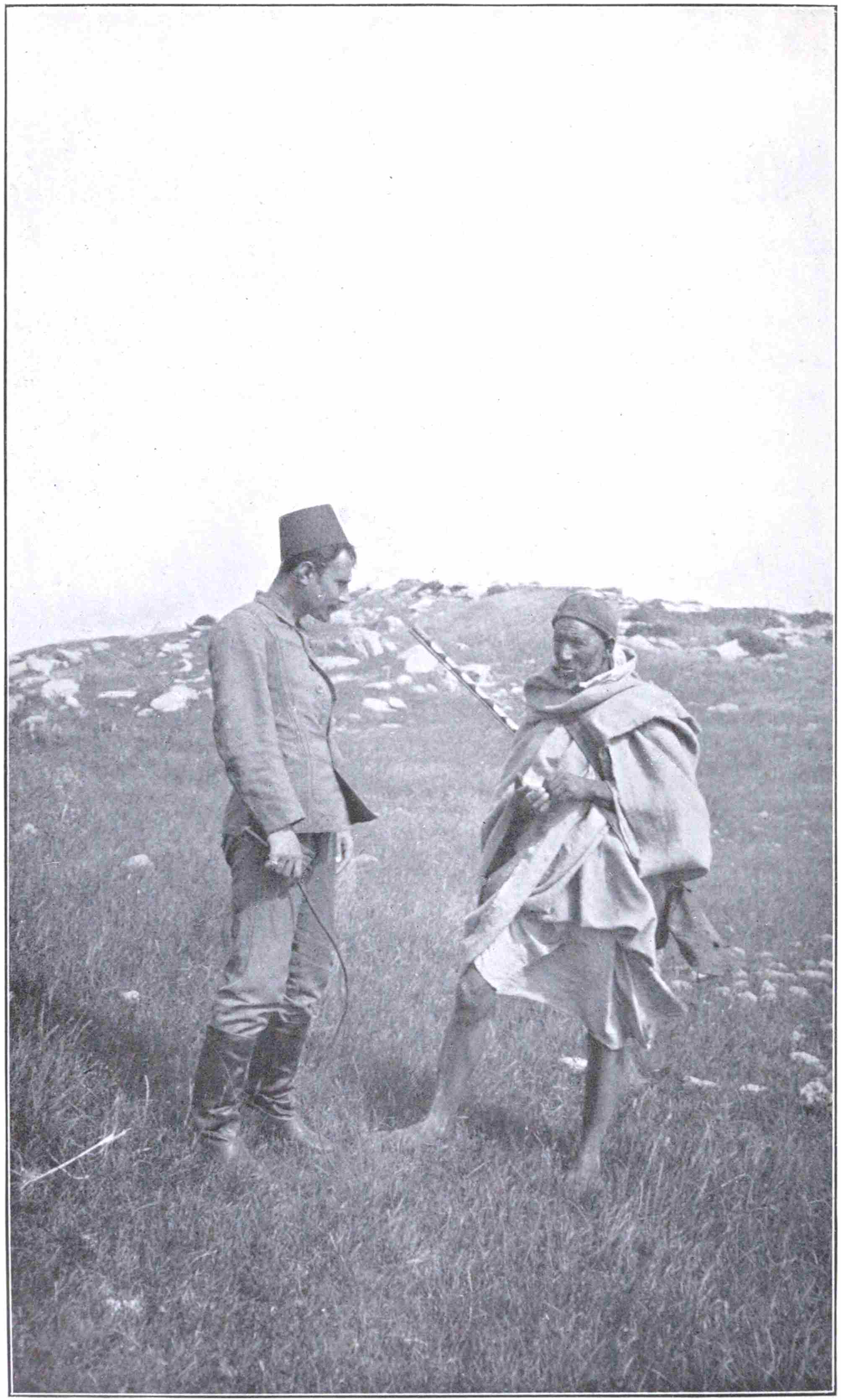 It was the middle of May when I was free of Athens, and, passing over to Smyrna, found Ramsay about to start. A third member of the party arrived two days later, an adventurous fellow who had spent part of his youth in Albania and Montenegro, and, knowing little of ancient things, cared less, so he had a good horse to ride and an unknown track to follow. The apparatus of travel, which we gathered at Smyrna, was of the simplest,—a single tent and a few pots and pans, but6 no canned stores; and two simple villagers were hired to serve us. The qualifications of the one chosen to cook became manifest on the second night in camp. We had left railhead at Seraikeuy, and ridden up the Lycus valley to the foot of the white cliffs of Hierapolis. Mehmet bought a turkey of the peasants of Pambuk Kalessi, and was bidden to have it ready for the next night’s supper. Early on the morrow we went up to the site, and all that day, under a broiling sun and among some of the best preserved Roman tombs in Asia Minor, I entered on an arduous apprenticeship to the best epigraphist in Europe. Sharpset at nightfall we hurried down expectant of our turkey. Mehmet sat placid, the bird at his feet. It was a corpse, indeed, but no more, not even a plucked one. “What am I to do with this?” said Mehmet.