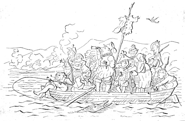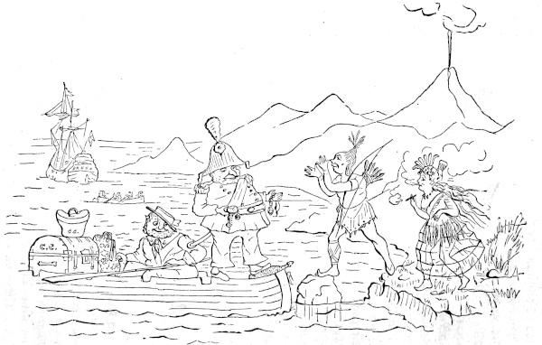 | America not discovered by Jason.—Lithographic Specimens attributed to the Northmen in the Eleventh Century curious, but executed by Skalds more Modern.—Bishop Berkeley’s Western Star not the First American Constellation.—Columbus offers a Continent at Private Sale; Isabella, a Spanish Lady, takes him up, and the Profits also.—A Fish Story confirmed.—Of Ferdinand’s Necklace.—Price of Eggs advanced in Spain.—England finally sees something.—Discoveries which Columbus did not make.—Ponce de Leon.—Mexico unfortunately discovered.—The Straits of Magellan and other Straits.—De Soto at the Bottom of the Mississippi.—Champlain, a wise man, founds Quebec upon a Rock.—Sir Walter Raleigh and him smoking.—The Mayflower anchored.—Hudson up stream. | ||