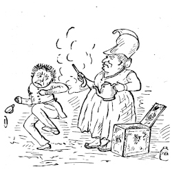 Given the humorous intent of the author, and the age of this edition, one must circumspect regarding oddities of spelling and hyphenation. Hyphenation at line breaks is retained only when a word is very clearly unhyphenated everywhere else. Otherwise, hyphens appear as printed.