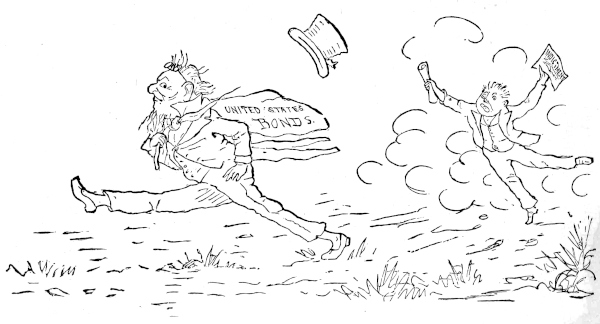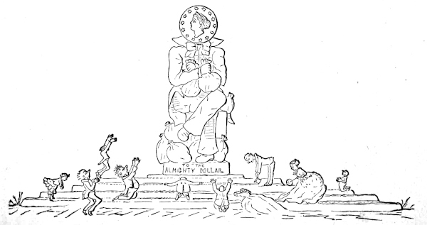 The public debt will naturally disappear. Perhaps some fortunate speculator in petroleum or Erie stock will pay it off, rather than have it in the way, or see it left to bear the market inopportunely. The secret of making money scarce will lead doubtless to the discovery of making it plenty; and then the public debt, being of no use to anybody, will naturally stand aside, as poor relations in times of plenty. Besides, gentlemen being selected, not for their own interests, but for the public good, will, it is to be expected, donate their salaries to a sinking fund, which will carry it off, as some companies do their stockholders’ dividends, to unfathomed bottoms. In fact, if the debt could be cut up into dividends, nothing more would be heard of it. If the whole truth may be safely told, the difficulty in the extinguishment of the debt will not be so much in its undoubted disappearance, as in settling upon that plan among the numbers presented, which will be permitted to hurry it out of sight.