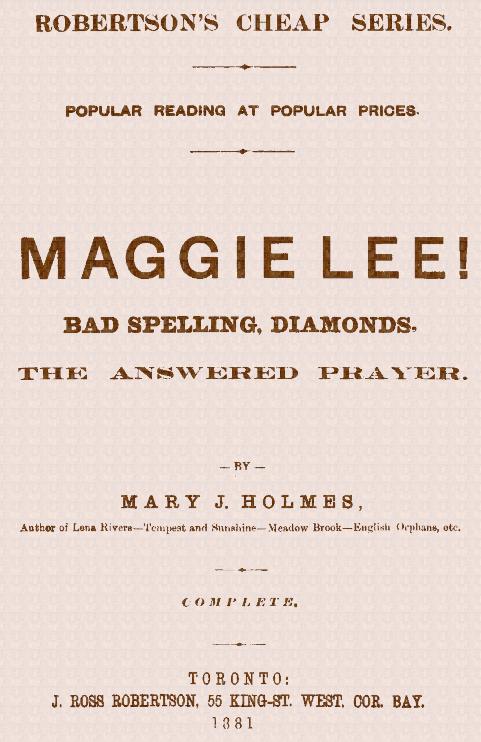 The Project Gutenberg eBook of Maggie Lee!, by Mary J. Holmes