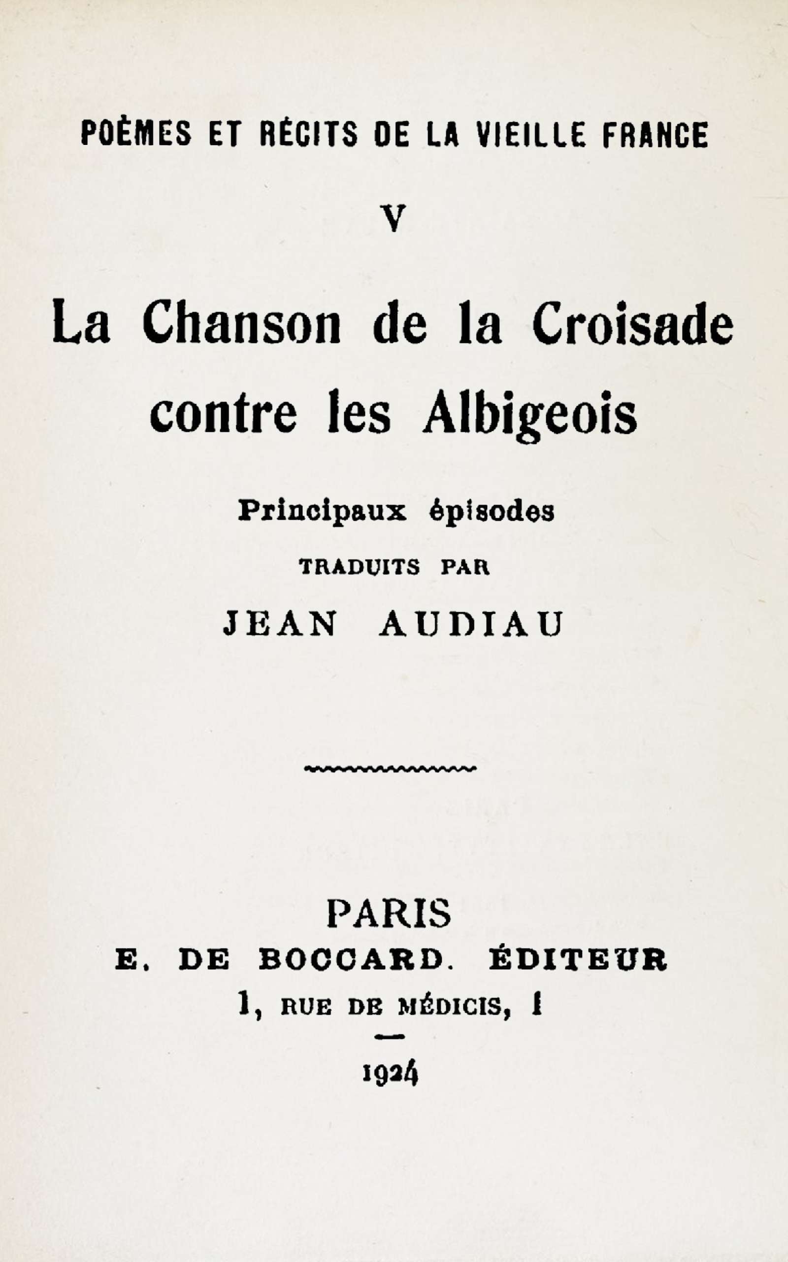 La longueur de la Chanson de la Croisade contre les Albigeois ne permettait pas de faire tenir dans les limites de cette collection une traduction complète du poème. Aussi me suis-je résigné à sacrifier une grande partie de l’œuvre de Guilhem de Tudela, pour réserver une place plus grande au récit autrement vivant du troubadour anonyme.