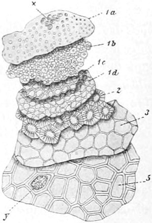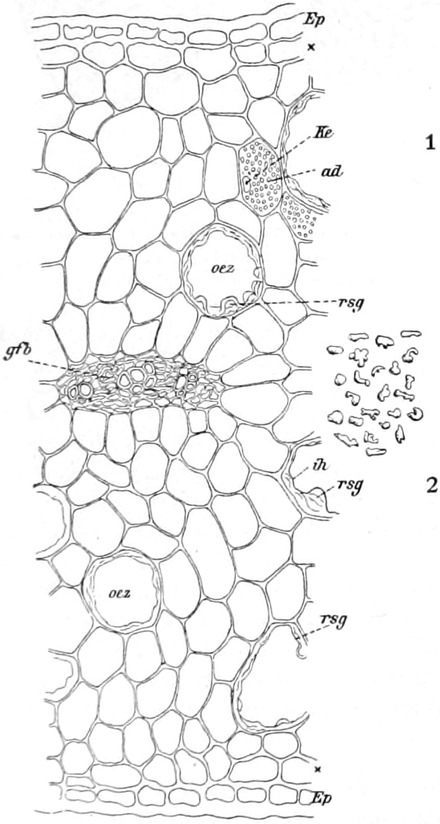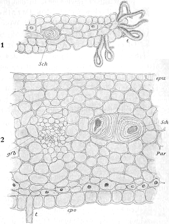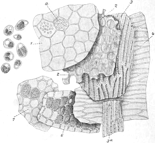 S. 479. Die bisweilen in russischem und galizischem Lycopodium beobachtete Weizenstärke rührt wohl von den Getreidesäcken her, in die die Droge gefüllt wurde (AUGUSTIN).