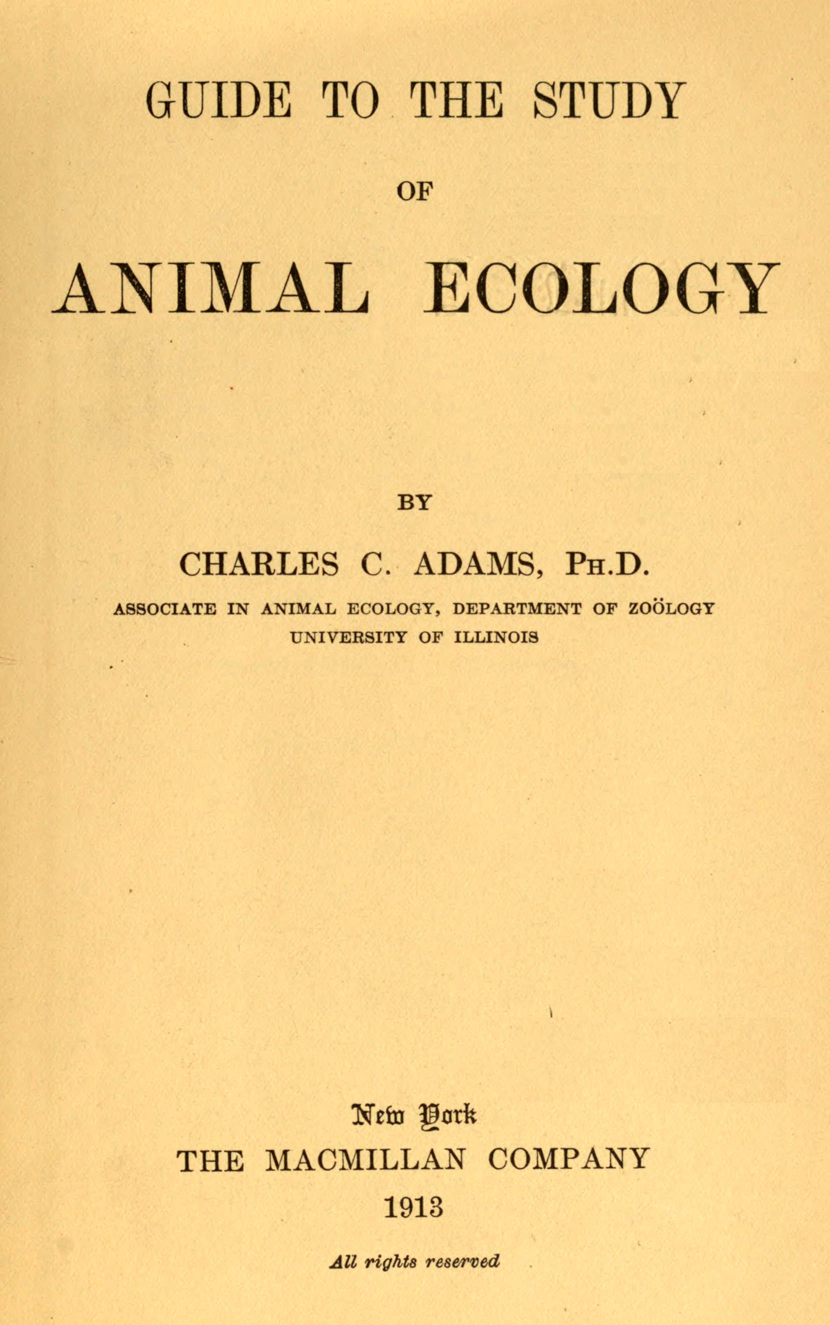 During the past ten years the writer has been trying to find some consistent and satisfactory working plan for handling the almost bewildering number of facts, of ecological significance, which have been accumulating in the literature of zoölogy, biology, and the allied sciences. This book is the outgrowth of the effort as it has developed in the study and teaching of animal ecology. I have not attempted to make this an exhaustive treatment of the subject, but rather to indicate briefly some of its general bearings and a method of approach. I have tried to keep in mind the needs of the beginner in ecology.