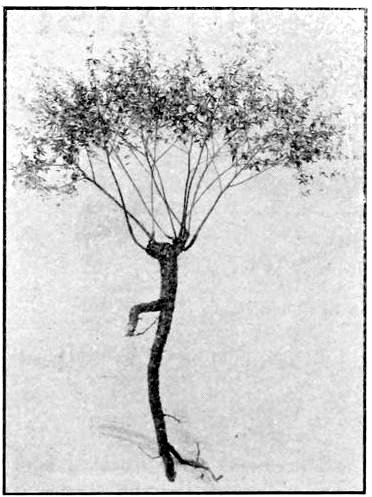 Twin Trees; Two Species.—Sometimes two trees attempt to occupy the same space at the same time. The cut above shows a red oak and a beech in close juxtaposition, neither having been able to crowd the other out, and the two are united for a short distance from the ground. This would hardly be called a natural graft perhaps, though the two are intimately united. The trees are vigorous typical specimens of the two species, growing near Brush creek, at Arion, in Scioto county, Ohio. Several other examples in the same region were noticed. Sometimes the two trees are the same species, but usually of different species, the union of tissue in all cases equally evident.
