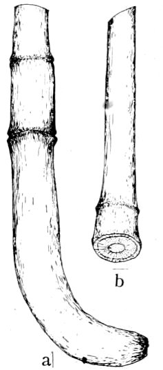 Fig. 3. (a) Base of a stem of P. floribunda with two cleavage joints. (b) Base of stem showing cleavage surface.