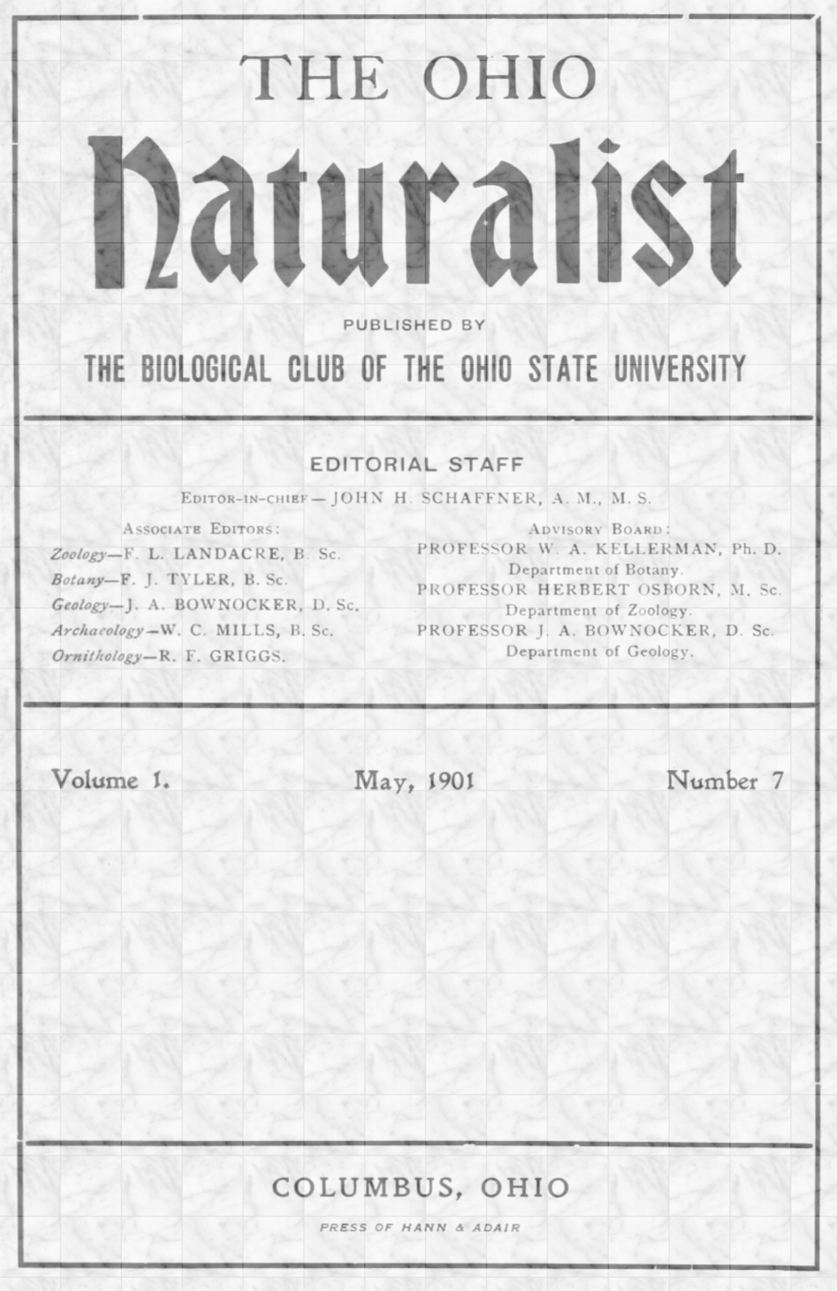 Title:The Ohio Naturalist, Vol. I, No. 7, May, 1901