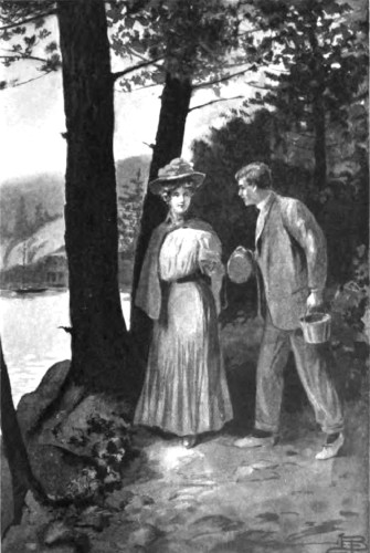The small steamer, after winding a tortuous way from island to island, at last turned into the little cove, which made a safe harbor for the fishermen of Fielding's Island. There were not many passengers at this time of year, and there were, in consequence, few lookers-on at the landing. Ira Baldwin, who combined the offices of shopkeeper and postmaster, was there to receive the mail-bag. Manny Green hung around ready for a jest with the purser. Cap'n Ben with his dog Tinker at his heels, loomed up a conspicuous figure to welcome the arriving guests. These stood on the deck waiting for the gang-plank to be thrown across to the wharf. As the tide was up it made a steep descent for Miss Elliott who crept down cautiously followed by her niece, Gwendolin Whitredge, coming at a more fearless pace. Cap'n Ben's big hand was there to give assistance at the last, and his cheery voice was the first to greet the two.